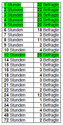 Insgesamt genannte Zeit (in Stunden): 1991