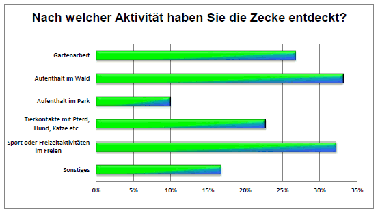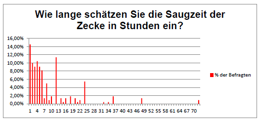 Wir gehen davon aus, dass alle Probanden die Fragen nach bestem Wissen beantwortet haben. Es ist durchaus möglich, dass die Zecke erst 3 Tage nach einem Waldspaziergang entdeckt wurde und zwischenzeitlich keine weiteren Aufenthalte im Freien stattgefunden haben, der Befragte die Zecke erst nach 72 Stunden (3 Tagen) entdeckt hat.
